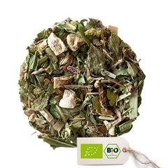 (100% biologisch und naturbelassen): Weidenröschen, Goldrute, Macawurzel, Löwenzahnwurzel, Löwenzahnblätter, Klettenwurzel, Angelikawurzel, Melisse, Zitronenverbene, Zitronengras, Meisterwurz und Pfingstrose.