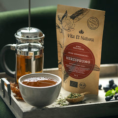 Bei Vita Et Natura stellen wir unsere Teemischungen aus sorgfältig ausgewählten Kräutern her, die überwiegend aus ökologischer Wildsammlung stammen und die volle Kraft und Energie der Natur bewahren. Jeder Tee wird in unserer eigenen Teemanufaktur schonend verarbeitet und von Hand verpackt – für garantierte Frische und höchste Qualität in jeder Tasse.