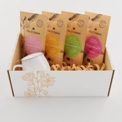 Unsere Schwangerschaftsbox begleitet jede Etappe der Schwangerschaft mit Liebe. Sie enthält unsere drei Umstandstees, abgestimmt auf die Trimester der werdenden Mutter, sowie eine elegante Kräuterteetasse (Farbe frei wählbar) mit Edelstahlfilter und einen schicken Tee-Dosierlöffel. Zusätzlich sind Himbeerblätter enthalten, die von Hebammen ab der 36. SSW zur Geburtsvorbereitung empfohlen werden.