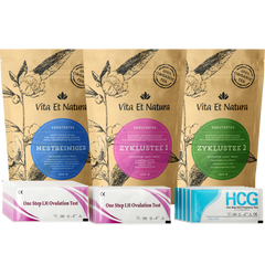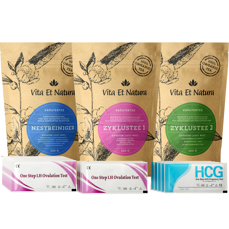 Enthält LH-Ovulationstests, die dir den Eisprung etwa 24–36 Stunden nach einem positiven Ergebnis vorhersagen, hoch empfindliche Schwangerschaftstests (10 mIU/ml) sowie unsere begleitenden Zyklustees 1 & 2 und den Nestreiniger.