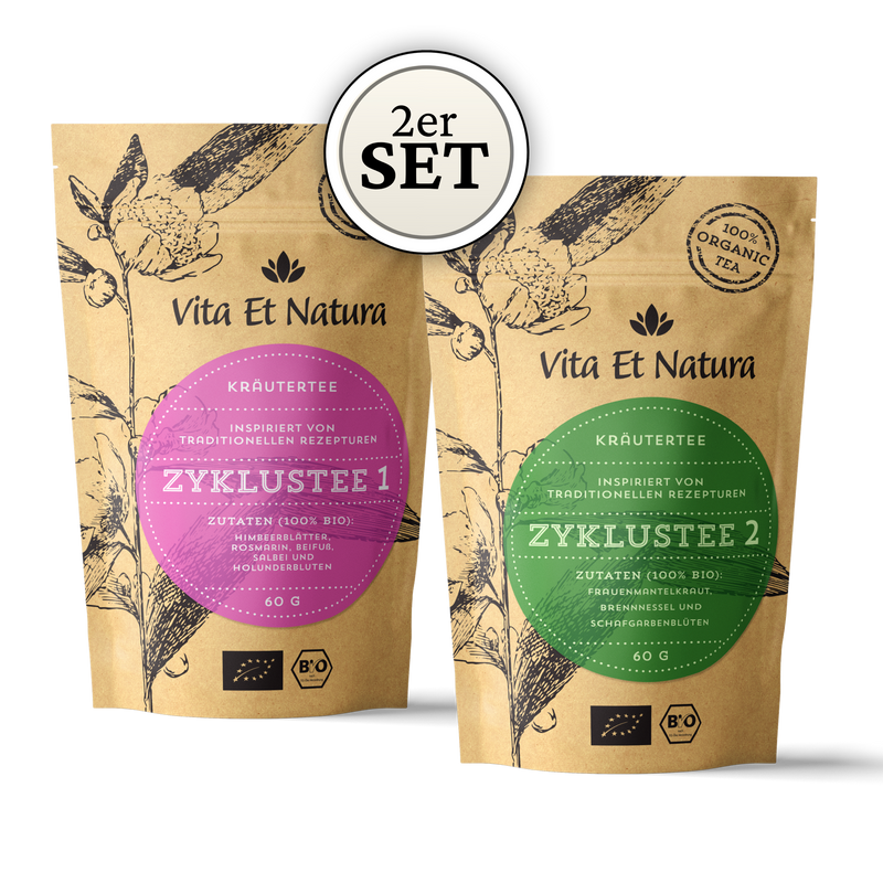 Ideal, wenn du „klein“ anfangen möchtest: Dieses Set enthält unsere bewährten Zyklustees in der kleineren 60 g-Packung (2 x 60 g). So kannst du testen, ob die Tees zu dir und deinen aktuellen Bedürfnissen passen.